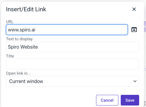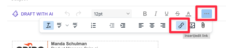 In the email modal, choose the text you would like to hyperlink and highlight it