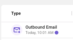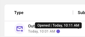 If an email has been opened or a tracked link has been clicked, a purple dot will appear next to the email in the activity list.